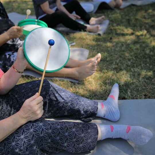 V rámci muzikoterapie majú možnosť si taktiež aktívne vyskúšať aj ďalšie hudobné nástroje, na ktorých sa môžu pokúsiť spoločnými silami v skupine vytvoriť komunitné hudobné zážitky. Spojením síl, vzájomnou podporou, dopĺňaním sa zúčastnených hudobníkov vznikajú netradičné rytmy, melódie, ktoré vyjadrujú vnútorné nastavenie pacientov. Pomáhajú dostať na povrch aktuálne prežívané emócie, spracovávať negatívne zážitky a navodiť pozitívne nastavenie pacienta.