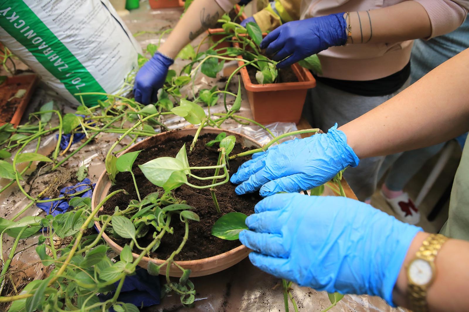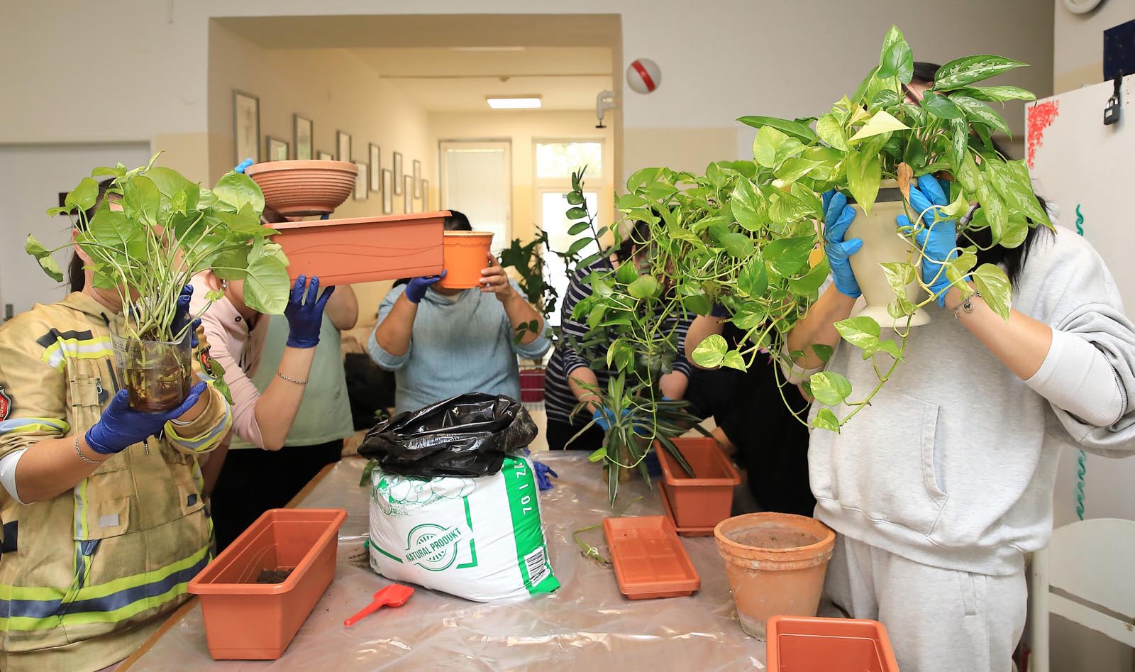 Na našom oddelení sme 15.októbra zapojili pacientov do zaujímavej integrovanej aktivity presádzania kvetov. Spolu s personálom sa sadili nielen nové kvety, ale aj presádzali a rozsádzali kvety, ktoré nám už doteraz oddelenie skrášľovali. Pacienti si mali možnosť vybrať z rôznych kvetináčov a druhov kvetov, každý podľa svojej fantázie a momentálneho cítenia tak, aby kvetinová výzdoba čo najviac skrášlila a spríjemnila prostredie oddelenia. Táto činnosť pacientov inšpirovala, sami aktívne navrhovali rozmiestnenie kvetov. Bolo vidieť, že ich práca zaujíma, baví a že majú záujem o zatraktívnenie prostredia, ktoré sami užívajú. Každý do rastlinky zasadenej vlastnými rukami mal možnosť do nej vložiť kus svojho cítenia, svojej vízie. Rastlinky predstavovali zanechanie starého a vyčerpaného spôsobu života a víziu, vieru v nové, radostné a funkčné zajtrajšky. Novo zasadené rastlinky vyjadrili návrat a štart do spoločnosti, do života.