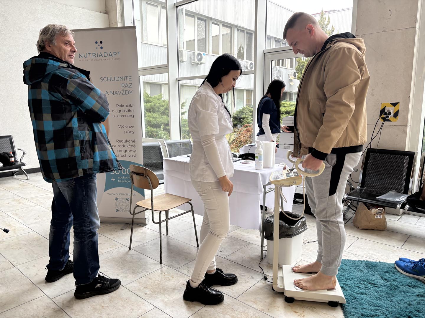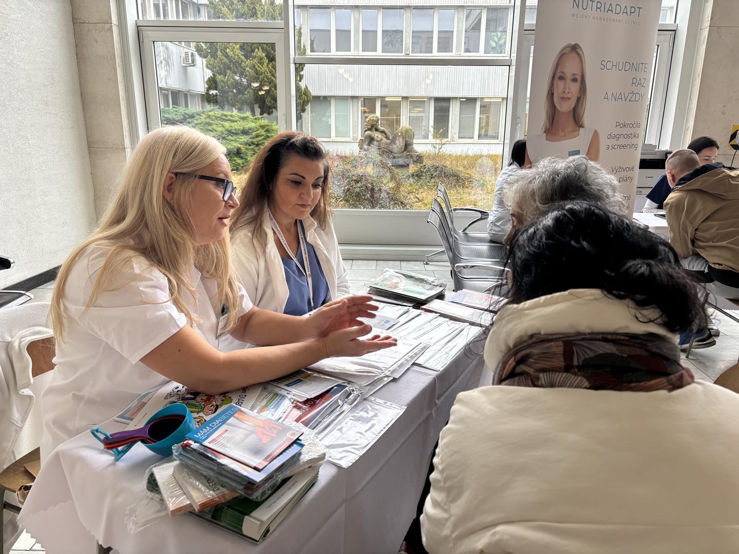 Konzultáciu o zdravej výžive poskytla bezplatne a bez objednania aj naša nutričná poradkyňa Ing. Alžbeta Hercegová, podologička PhDr. Helena Szökeová, MPH, zas priblížila správnu starostlivosť o chodidlá a najčastejšie problémy či komplikácie. Záujemcovia sa mohli poradiť aj s fyzioterapeutom PhDr., Mgr. Michalom Vavrom, PhD. a vďaka spolupráci s Nutriadapt Nutrition and Beauty Clinic Nové Zámky mohli absolvovať celkovú diagnostiku tela pomocou špecializovaného prístroja.