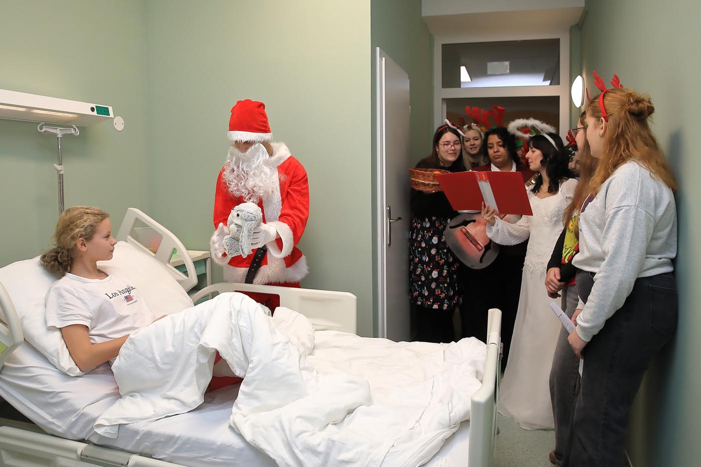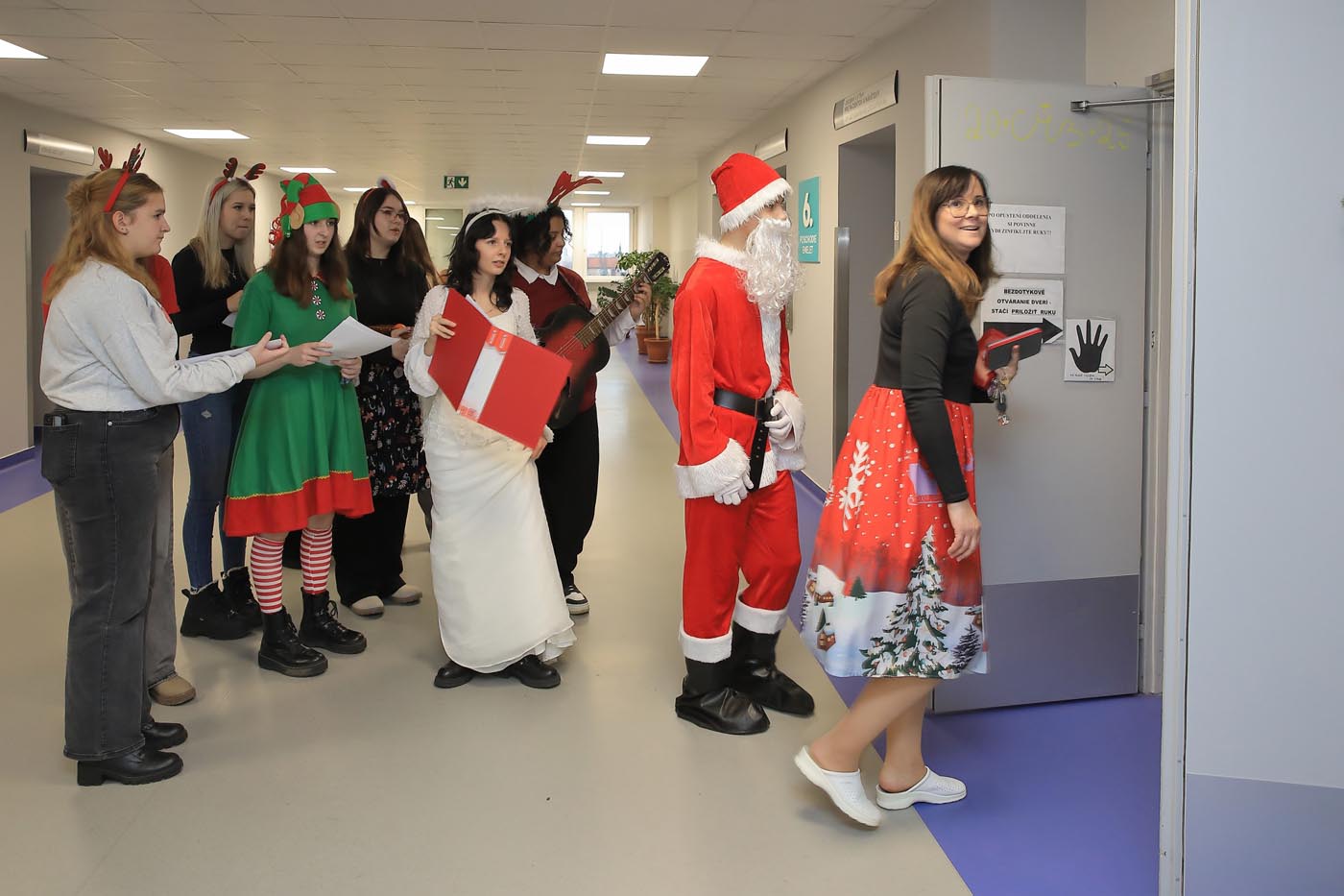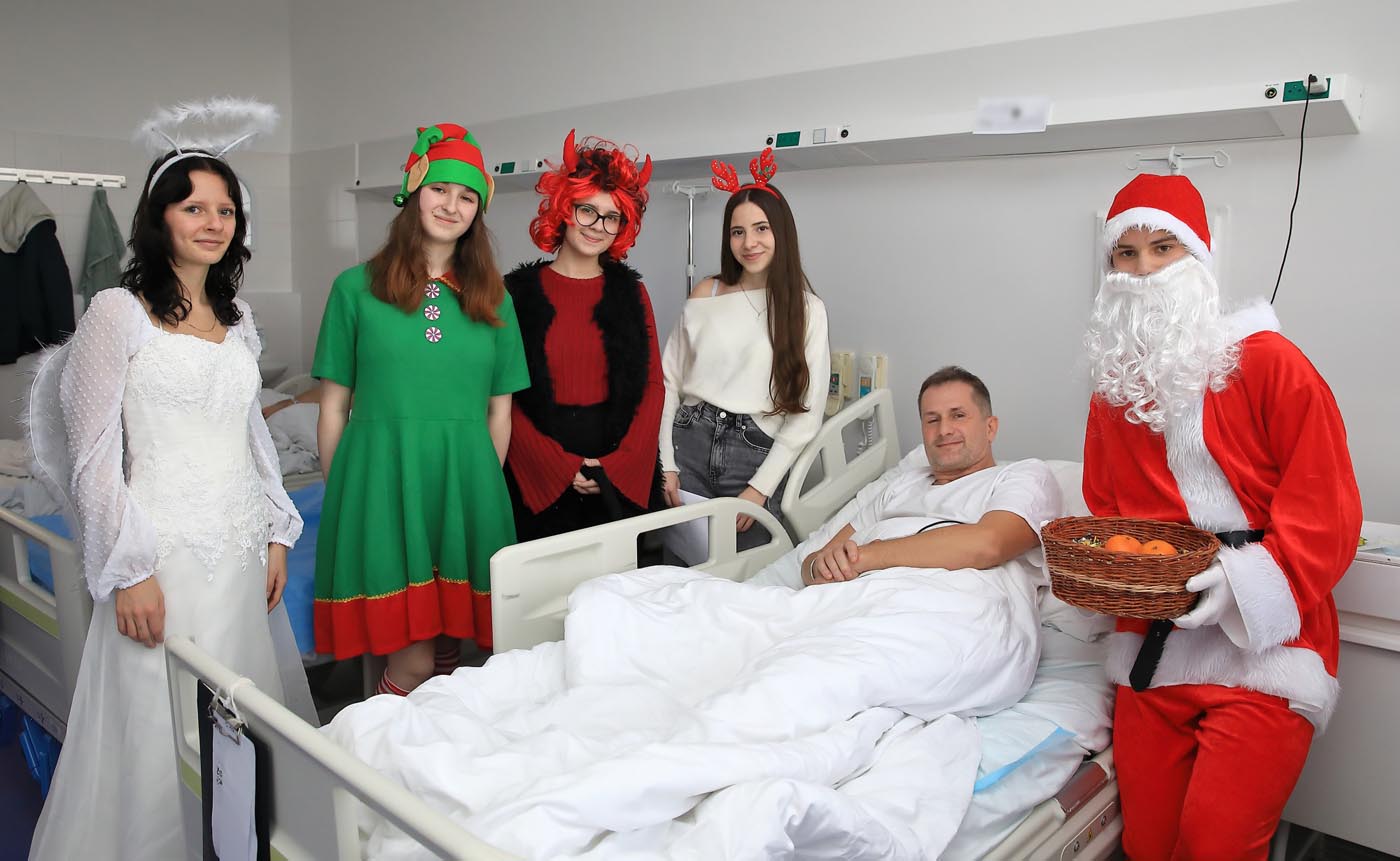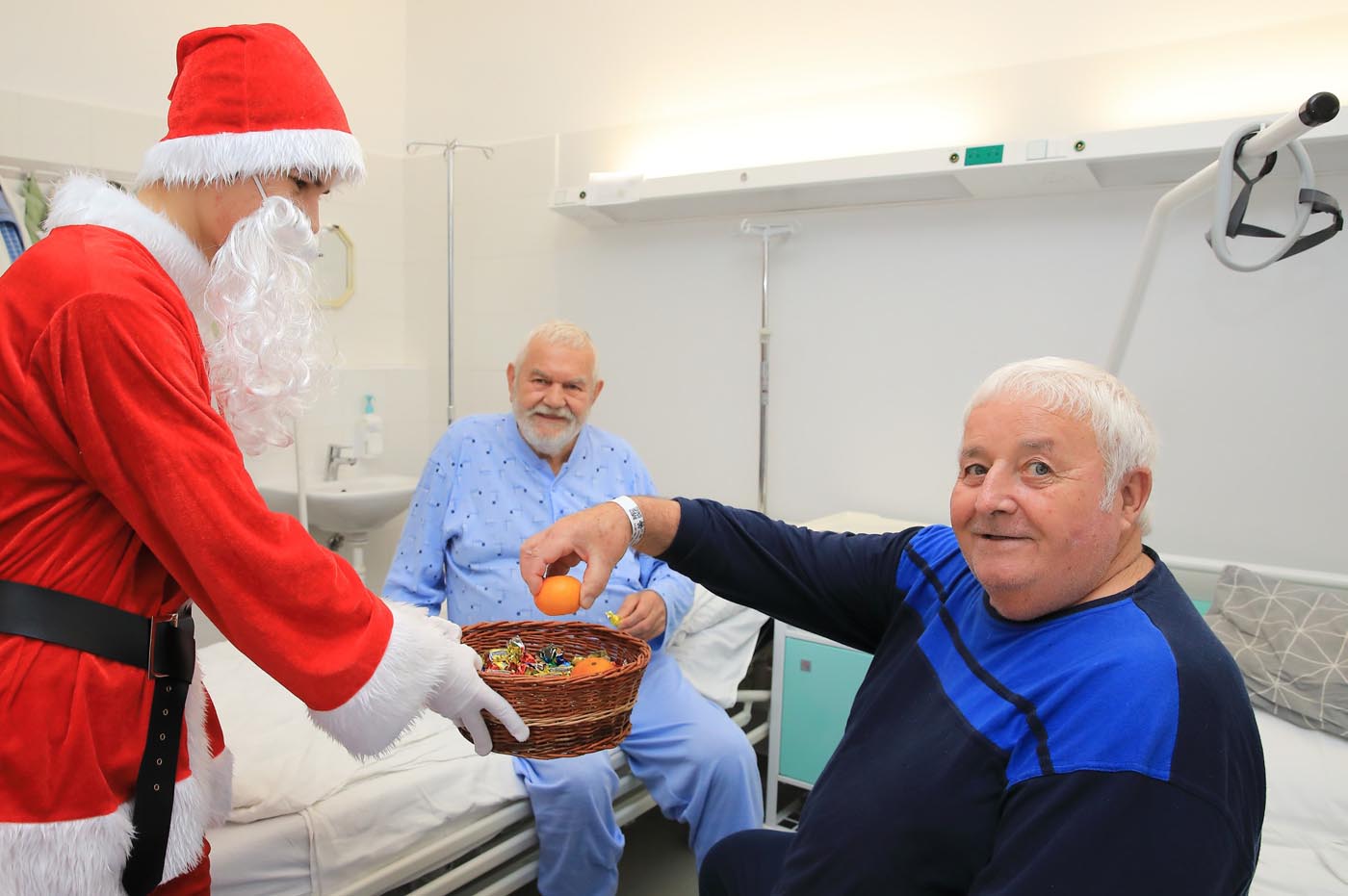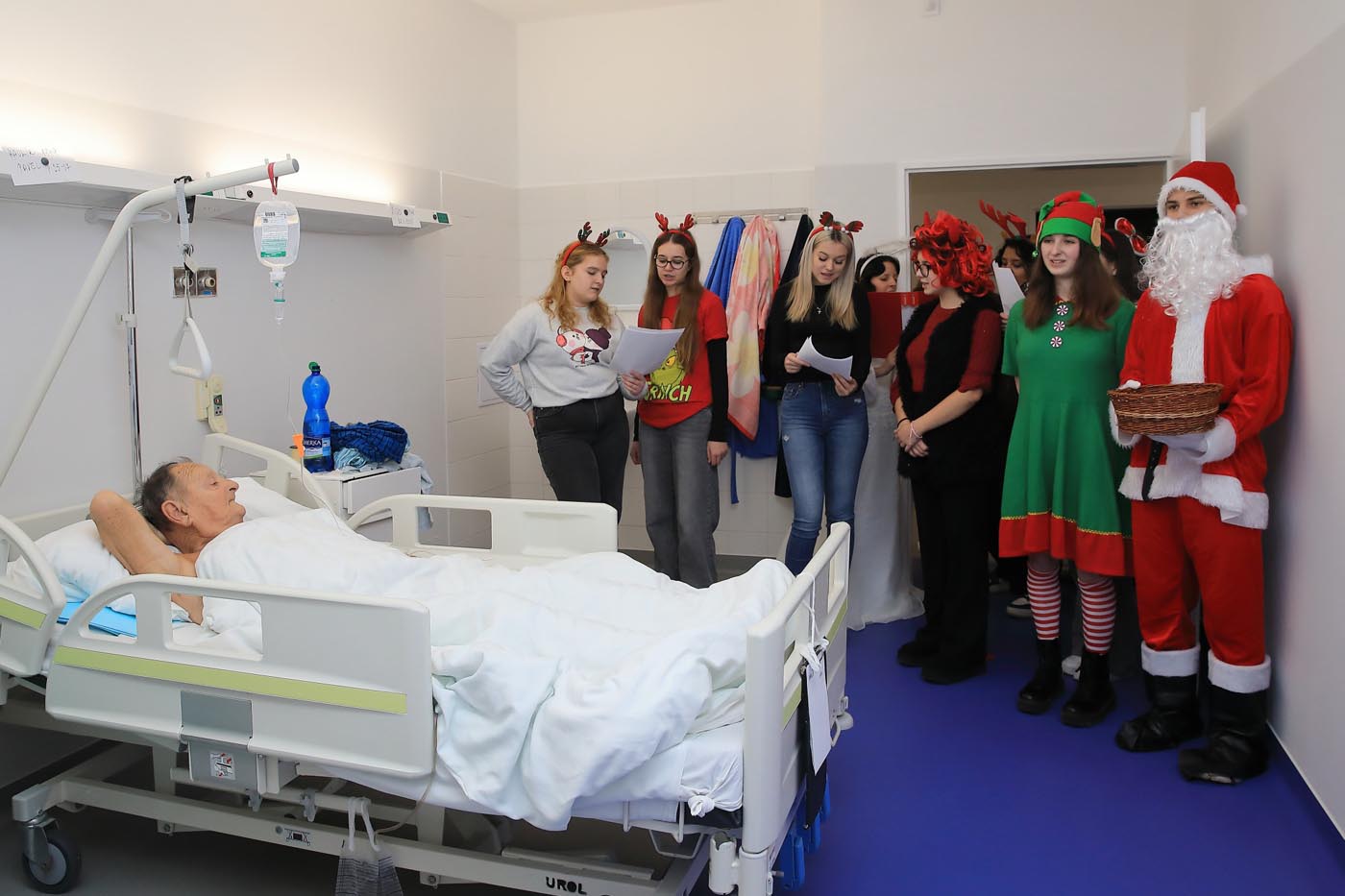 V piatok navštívili oddelenia žiaci Strednej zdravotníckej školy, ktorí pacientom rozdávali mikulášske balíčky a spievali koledy. Okrem Mikuláša nechýbal anjel, čert s dlhým chvostom, škriatkovia, soby a pomocníčkovia, ktorí hrali na hudobných nástrojoch a spievali vianočné pesničky po celej nemocnici. Ich návšteva spríjemnila hospitalizáciu detským aj dospelým pacientom a priniesla milé spestrenie bežného nemocničného dňa.