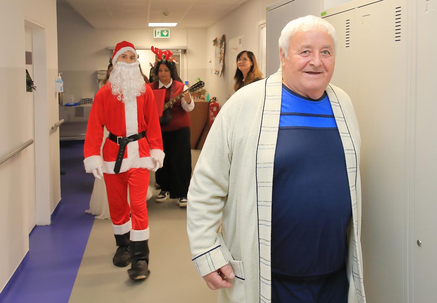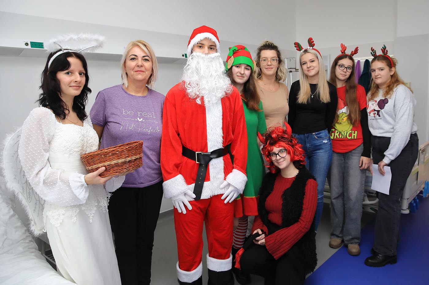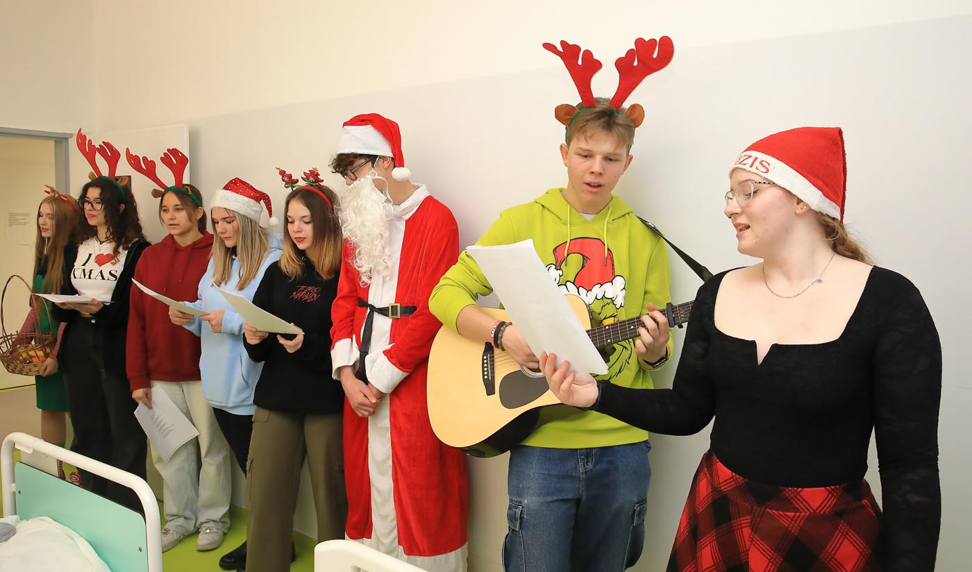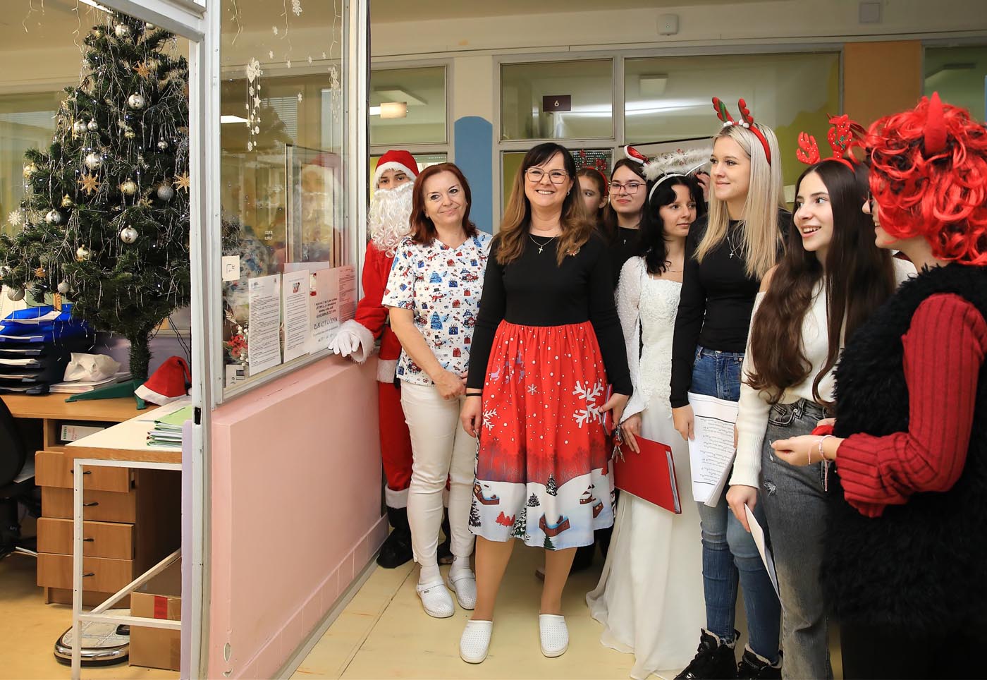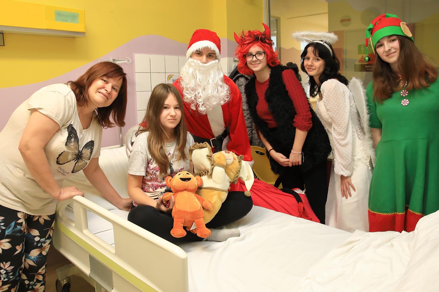 V piatok navštívili oddelenia žiaci Strednej zdravotníckej školy, ktorí pacientom rozdávali mikulášske balíčky a spievali koledy. Okrem Mikuláša nechýbal anjel, čert s dlhým chvostom, škriatkovia, soby a pomocníčkovia, ktorí hrali na hudobných nástrojoch a spievali vianočné pesničky po celej nemocnici. Ich návšteva spríjemnila hospitalizáciu detským aj dospelým pacientom a priniesla milé spestrenie bežného nemocničného dňa.