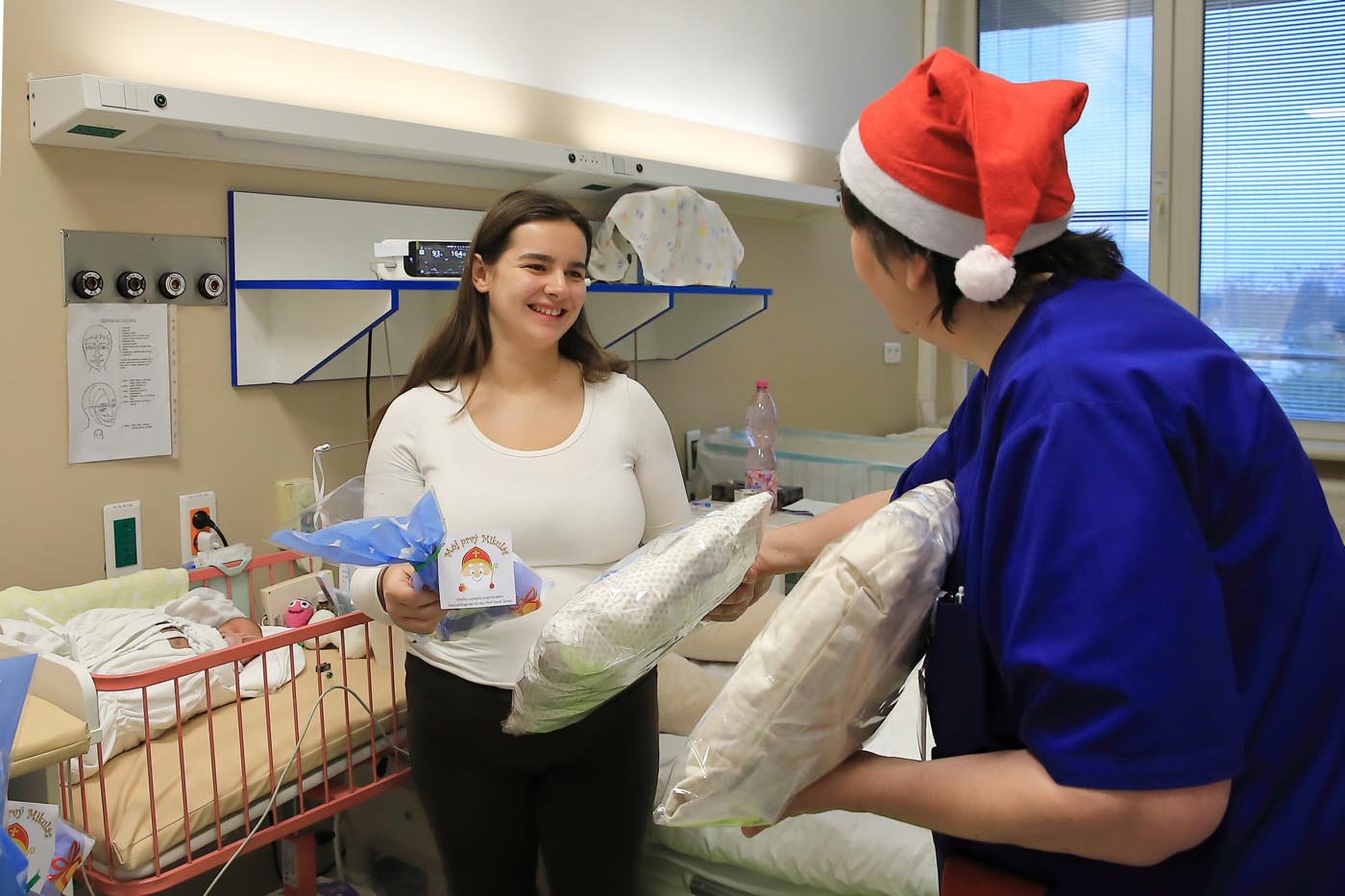 Svoje úplne prvé mikulášske balíčky dostali aj bábätká na Neonatologickej klinike. Mamičkám Mikuláš pribalil ručne vyrobené vankúšiky s motívom detských kresieb, ktoré darovali žiaci zo ZŠ Adolfa