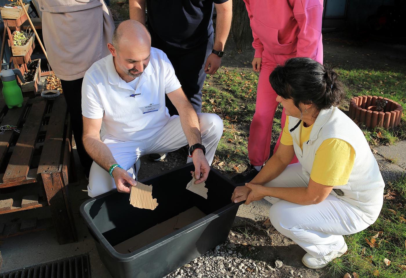 Pri pohľade z okna sa nám vynárajú pekné spomienky na posledné slnečné dni jesene, kedy pacienti nášho Psychiatrického oddelenia spolu s personálom založili vermikompost.