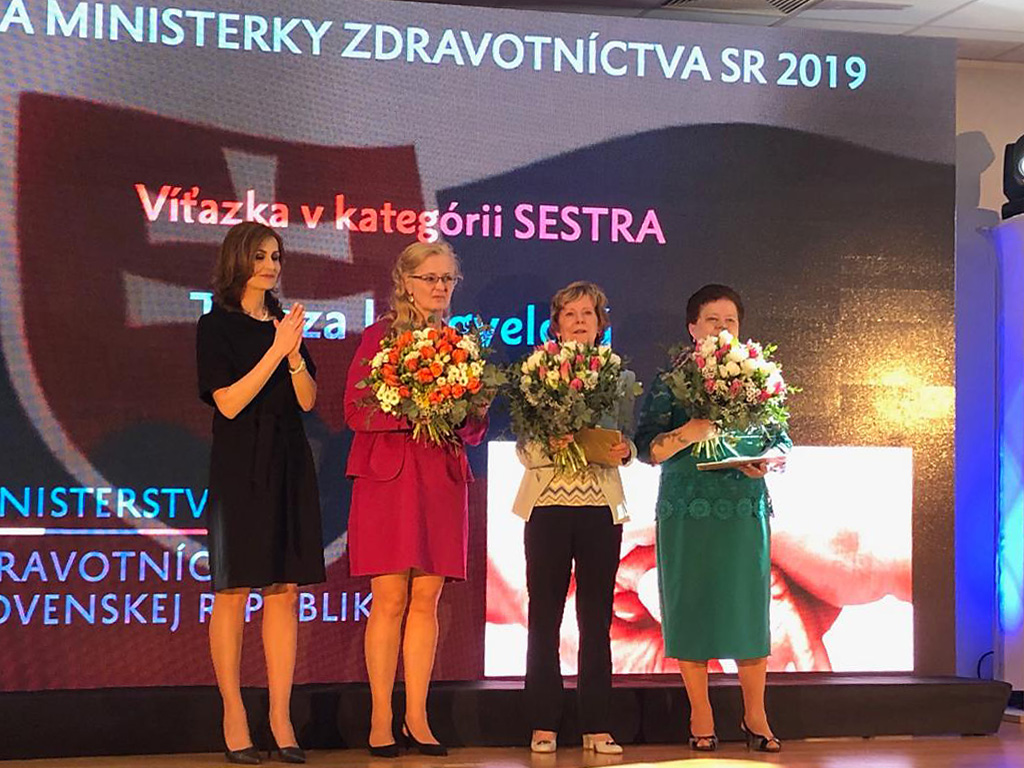 V pondelok 8. apríla udelila ministerka zdravotníctva Andrea Kalavská významné ocenenia v troch kategóriach Lekár, Sestra a Iné zdravotnícke povolanie. Je nám potešením, že si ocenenie v kategórii sestra prevzala aj naša zamestnankyňa Helena Závodská, ktorá pracuje ako špecialistka v inštrumentovaní na centrálnych operačných sálach. Cenu ministerky zdravotníctva SR za rok 2019 si pani Závodská prevzala priamo na pôde ministerstva. Išlo o prvý ročník podujatia, kde sa pani ministerka podujala vzdať úctu a poďakovanie náročnej práci zamestnancov v zdravotníctve. Následne poďakovalo pani Závodskej aj vedenie FNsP v Nových Zámkoch, kedy medicínsky riaditeľ MUDr Zoltán Danczi vyzdvihol najmä jej dlhoročnú prácu pre našu nemocnicu ako aj jej odbornosť. „Som vďačná, že máme v nemocnici zamestnancov s takýmto prístupom. Málokto si uvedomuje, aká je náročná a zodpovedná práca v zdravotníctve, preto si i my vážime ocenenie od pani ministerky“, dodala ekonomická riaditeľka FNsP Nové Zámky Ing. Ľubica Bartošová.