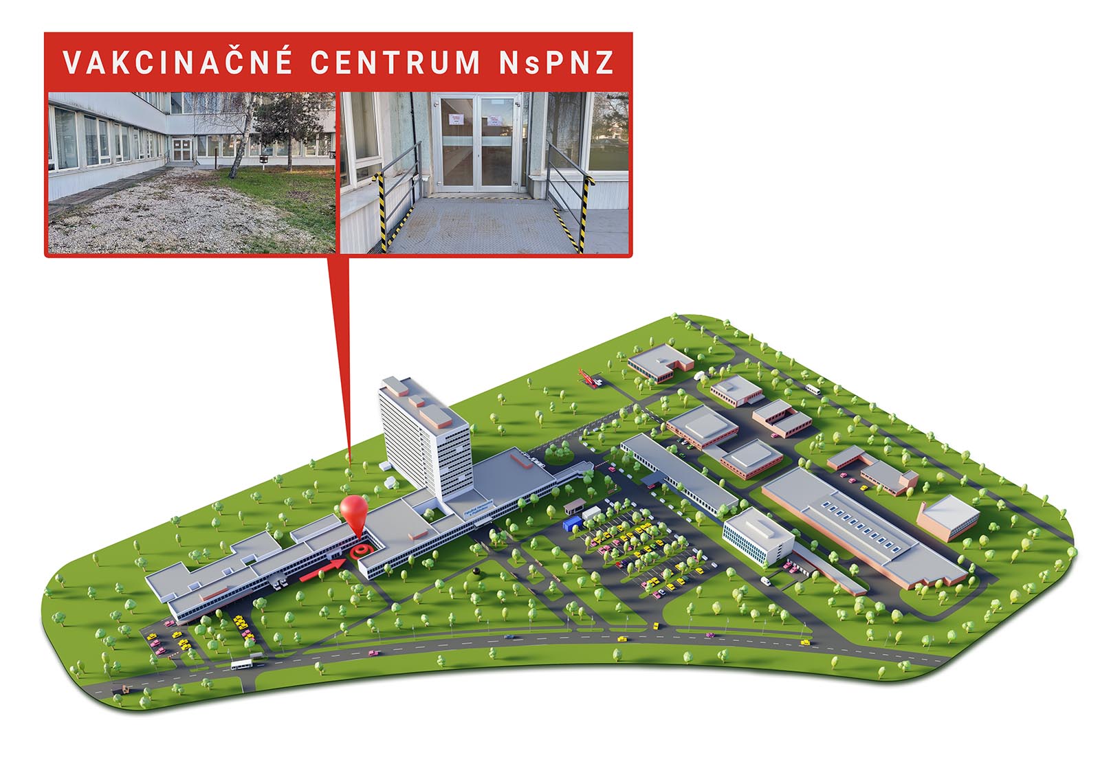 Očkovanie prebieha v priestoroch FBLR na prízemí nemocnice, vchod zvonka od Ústavnej lekárne. Miesto očkovania je označené.
