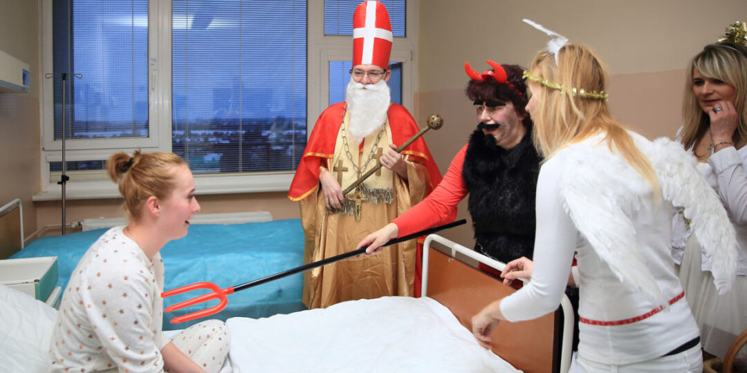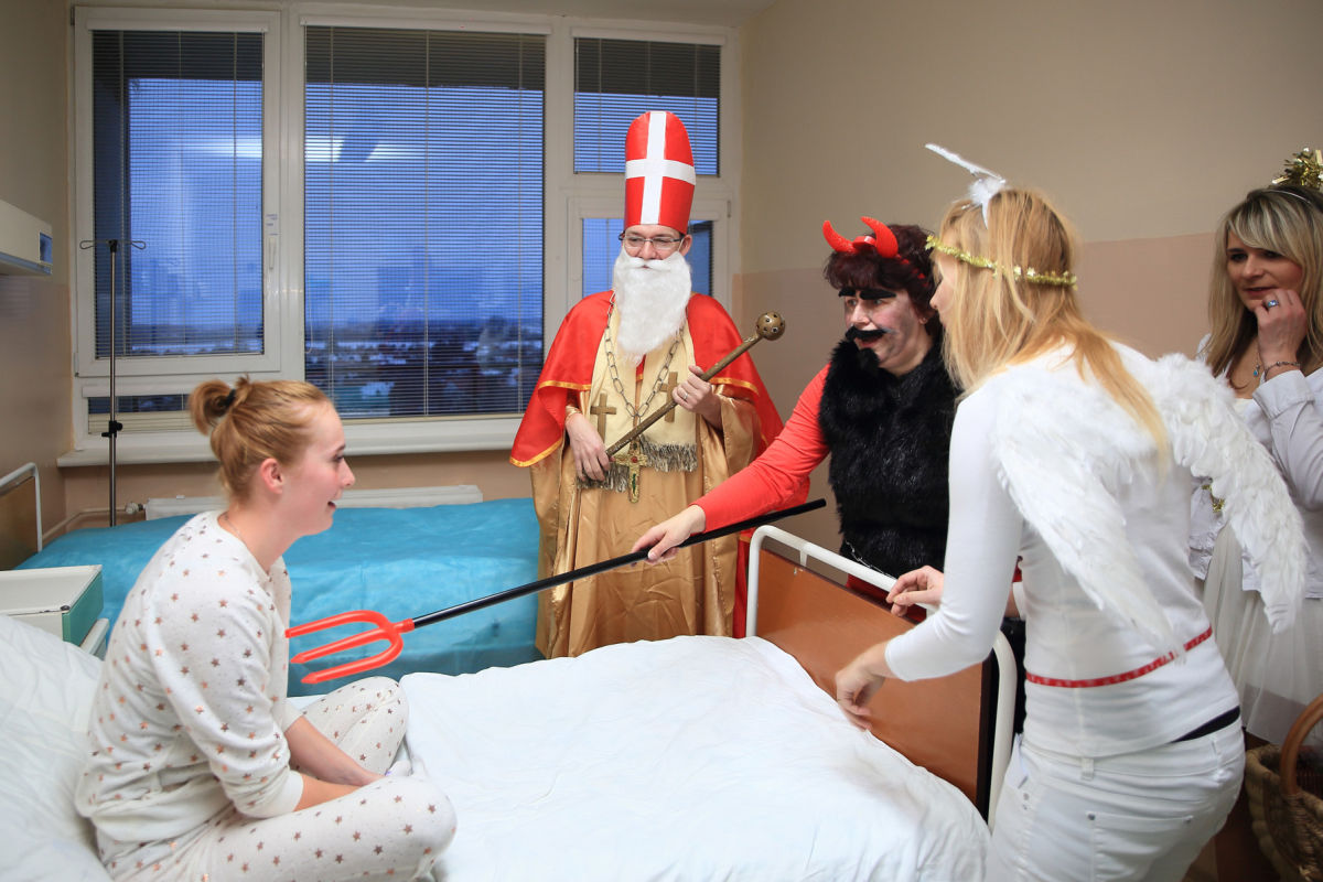Šiesteho decembra Mikuláš nezabudol ani na pacientov novozámockej nemocnice. Zavítal k nim s darčekmi, smiechom, priniesol aj svojich pomocníkov, anjelikov a čertov, ktorí pacientom vštepili veľa pozitívnej energie. Pacienti Mikuláša ubezpečili, že celý rok poslúchali a dodržiavali liečebný režim. Z návštevy Mikuláša, anjelov a čerta mali obrovskú radosť.