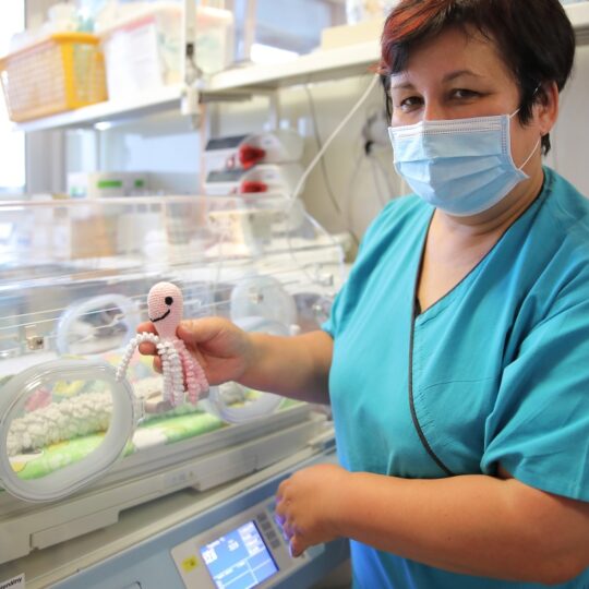 Najskôr prišiel e-mail. Za ním prišiel balíček a slová, ktoré prekvapili a veľmi potešili: „…radi by sme darovali pár štrikovaných chobotničiek pre predčasne narodené detičky…“, odosielateľ Hasičský a záchranný zbor MV SR. Veľmi radi sme súhlasili. Chobotničky sú darom, ktorý poteší viacnásobne. Najmenším predčasne narodeným deťom pomôže prekonávať prvé dni života a vytvorí pohodlie, kedy môžu cítiť príjemný dotyk, alebo sa samé dotýkať chobotničiek a cítiť sa tak bezpečnejšie, aj keď sa nachádzajú pre ne v novom prostredí – mimo bruška ich maminky. Personál Neonatologickej kliniky sa vždy poteší, že sú ľudia, ktorí cítia spolupatričnosť s deťmi, o ktoré sa staráme a spoločne im fandíme. Rodičov poteší, že i ďalším ľuďom na ich drobčekoch záleží.