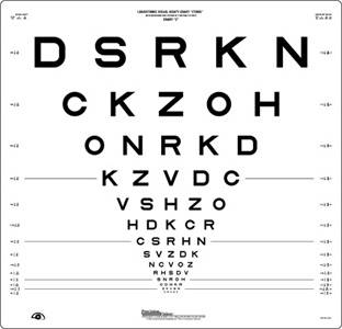 Tieto vlastnosti umožnili hodnotenie zrakovej ostrosti podľa počtu prečítaných písmen, nie podľa počtu prečítaných riadkov. Zápis najlepšej zrakovej ostrosti je 20 / 20, čo je ekvivalent 5 / 5 Snellenovho optotypu (čiže 100 %). Ak vyšetrený nedokáže zo 4 m prečítať aspoň 3 písmená, prechádzame na čítanie z 1 m.