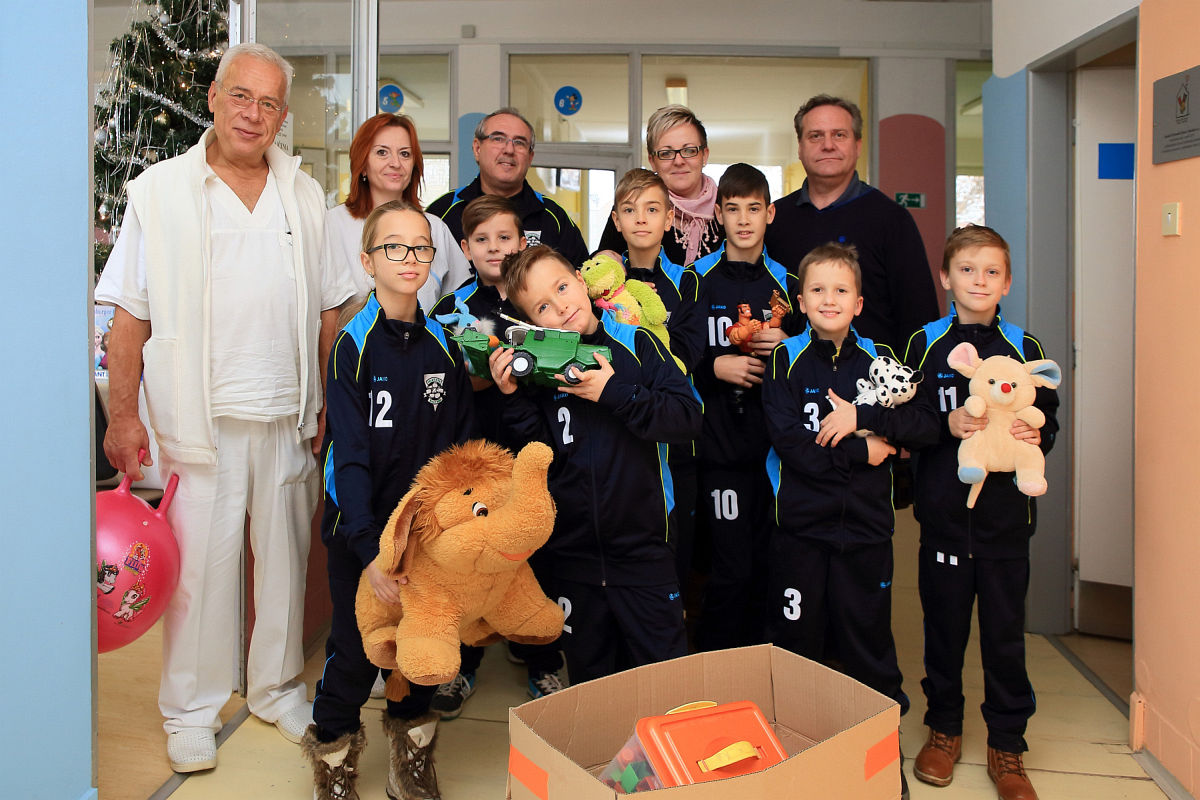 Na malých pacientov mysleli ich rovesníci z futbalového klubu z Veľkého Kýru a hokejisti z novozámockého hokejového klubu. Naši malí pacienti sa darčekom potešili.